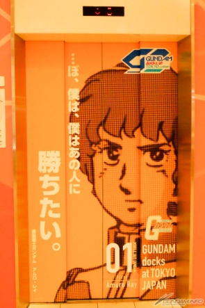 除了到处都有各种MS的装饰外,在电梯的门上也印上了角色和著名台词。