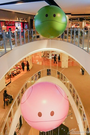 ▲1/10高达立像和哈啰气球充满震撼力!还能从各种角度欣赏。