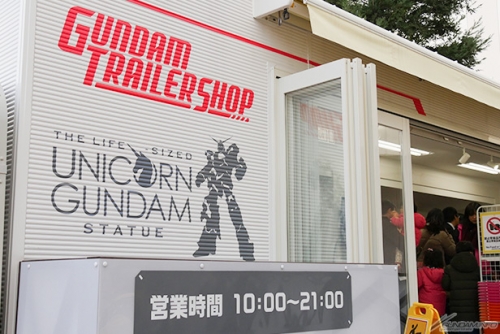 实体大独角兽高达立像脚边的高达拖车商店也贩售了限定明信片和资料夹!