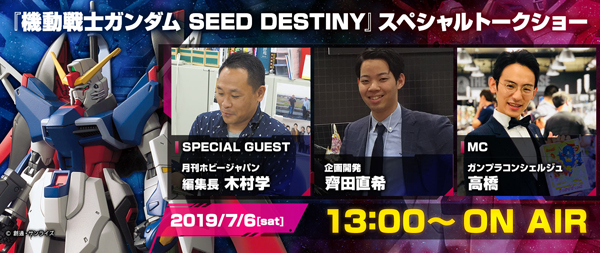高达模型复合设施「THE GUNDAM BASE TOKYO(高达东京基地)」决定于7月6日(六)举行「『机动战士高达SEED DESTINY』特别座谈会」。