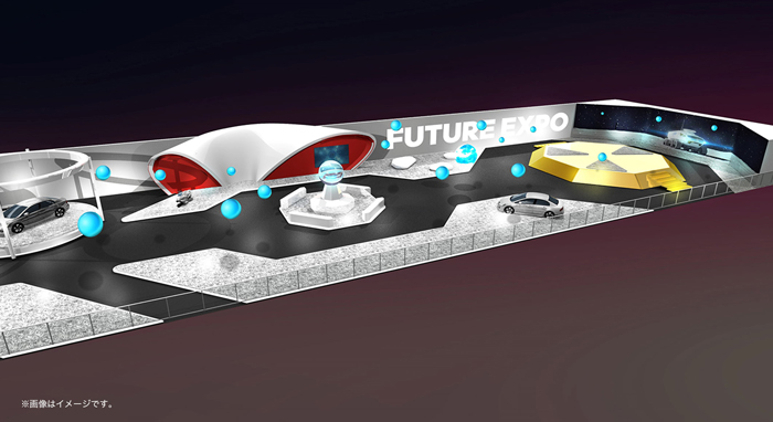 于移动体验主题园区“MEGA WEB”展开的免费展区“FUTURE EXPO”,集合了约60间企业团体的最新技术。使用MEGA WEB的一切,可以体验到未来的移动、都市生活、运动观战及地方观光等等,90种以上与生活有密切关系的“未来”内容。
