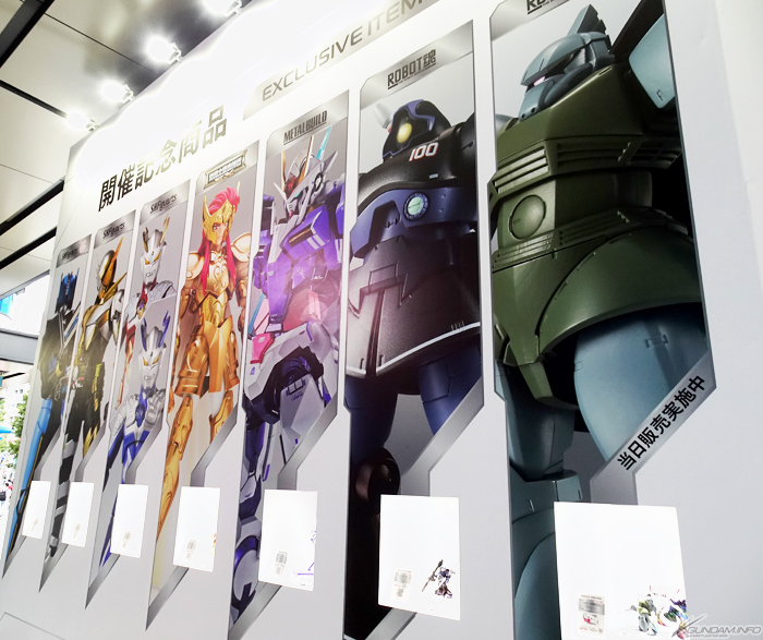 穿过入口后先以“GUNDAM FIX FIGURATION METAL COMPOSITE(G.F.F.M.C.)”系列为首,以各系列品牌分为各个区域,展示各种商品。