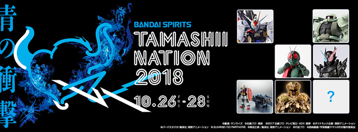 2018年起从「BANDAI」重生为蓝色「BANDAI SPIRITS」的「TAMASHII NATIONS」,将于10月26日(五)至28日(日),举办一口气公开今后将推出的角色及「TAMASHII NATION 2018 –蓝色冲击-」。