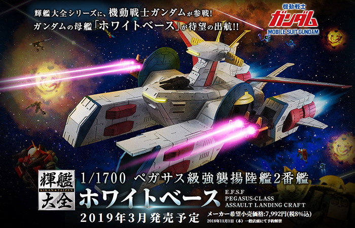 『辉舰大全(KIKAN*TAIZEN)』是以『大人的舰队收藏』为题材,以精密的造型、充满厚重感的涂装,以及光泽表现为制作概念立体化的已涂装完成品系列。藉由本次推出的『白色基地』,实现高达作品众盼已久的首次参战。