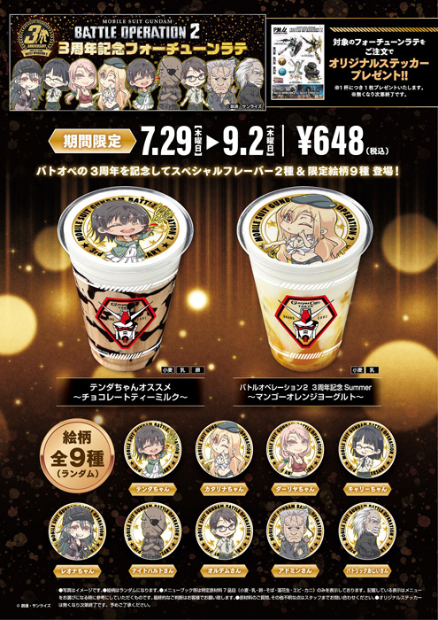 GUNDAM Café在7/29起“机动战士高达 激战任务2 3周年纪念fortuneLatte”登场!