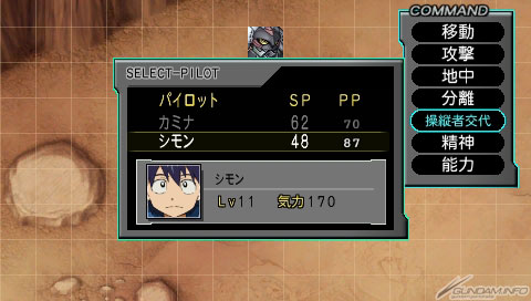 红莲螺岩处于合体状态时、使用个别指令「操纵者交换」的话,主驾驶和副驾驶会互相交换。例如卡米那一开始就拥有特殊技能「战意高昂」,较容易提高气力,比西蒙能快点使用强力武器。