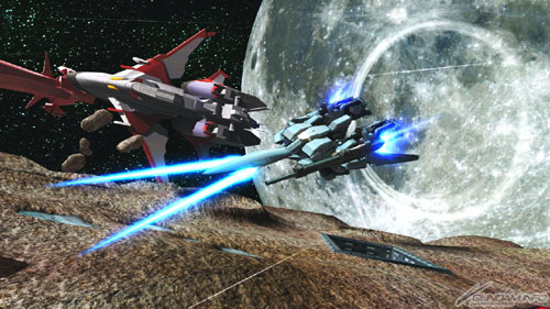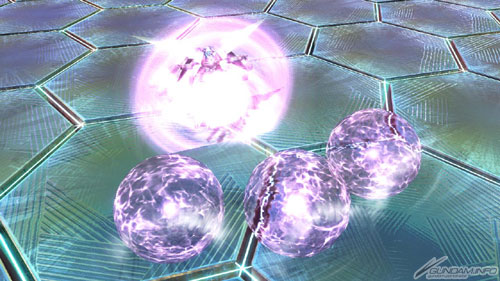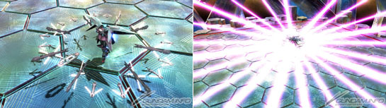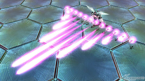 ▲在机体正面配置12发浮游炮并发射光束机体。多重锁定时各配置6发,同时攻击各自的目标。