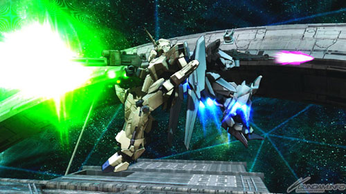 可使用蓄力射撃呼叫出独角兽高达进行全范围攻击等等,组合出多变的战术为其特征。