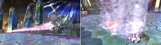 ▲配置为枪状使用浮游炮向前方大力突出的同时,从地面产生像冰柱的能量力场。有慢慢向外展开与高速一直线发射2种类型的冰柱。
