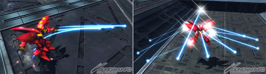 只要使用特殊格斗,就可以进行在一段时间内只操作感应炮的特殊动作,虽然在此时机体本身毫无防备,但是可以从远距离操作感应炮进行射击与追讨敌机等动作。