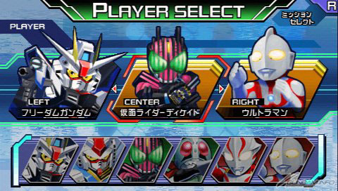 BANDAI NAMCO GAMES推出的集结“假面骑士”、“超人力霸王”、“高达”各系列角色梦幻共演的大人气系列‘共演英雄’。新作第 1弹的PSPR专用动作游戏“英雄大战 全力开火”将在2012年3月1日发售。