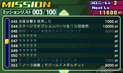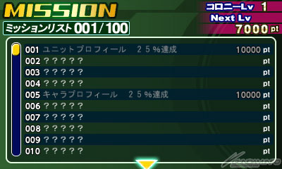 殖民地等级提升后,将可追加特殊MS、操作员变更后也可使用的角色、新型母舰、特殊的追加零件、和追加编队的编成。