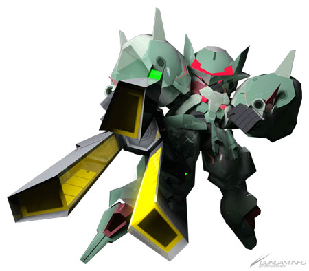 ‘机动战士高达F91’中登场的MS。虽然机体原先的防御力就很高,但在机体的HP低于40%以下时,将会发动技能1的“铁壁守备”,使防御力更进一步提升。虽然这个技能的效果会使冲刺速度减低,但发动技能2的“机动性上升”后,总合机体性能将会提升。