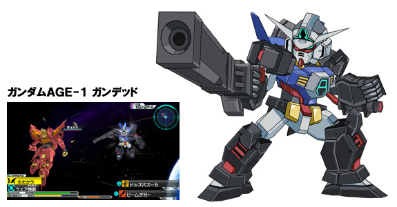 ■高达AGE-2 阿耳忒弥斯 两肩装备巨大的“远距离步枪”,可以狙击远方的敌人,一瞬间将其歼灭。藉由滑翔机模式的变形机构,还有作为高机动・高火力的战斗机来运用。 |