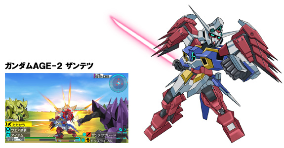 本作以RPG的方式进行“机动战士高达AGE”的世界冒险,完全收录 “菲利特”、“阿瑟姆”、“奇欧”的3世代物语!在故事以及区块间移动,和各式各样的角色进行对话,有时候和敌人展开战斗, 跨越100年间的战斗将能够藉由游戏来真实体会。