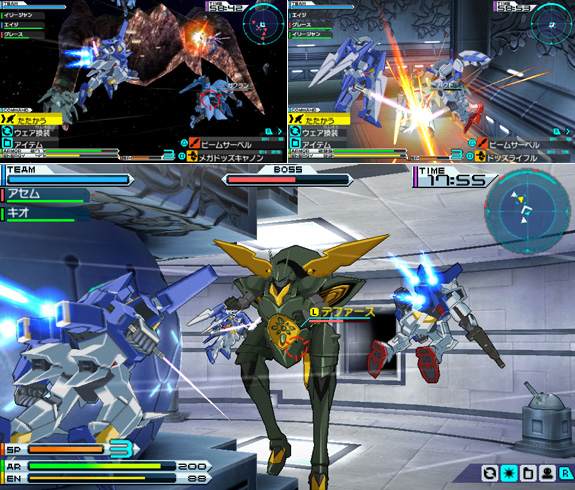 另外准备的 “交叉游玩任务”中,最多可以同时三名玩家一起享受任务 协力、对战的乐趣。还可以获得在故事部分没办法获得的MS及素材、驾驶员等等!