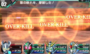 最后由零号发动间接攻击DRIVE技能“广域零号射线”,给予敌方全体极大的伤害造成OVEL KILL的状态!
