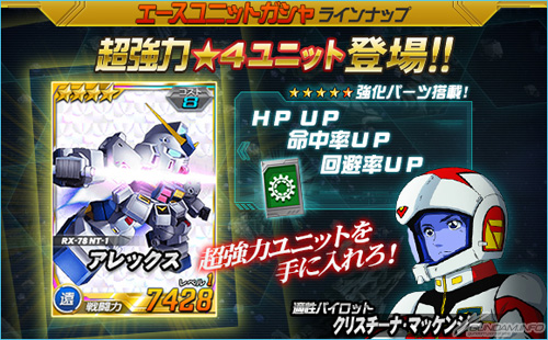 而王牌转蛋机中则追加包含“★4高达NT-1”在内的3台超强力机体。