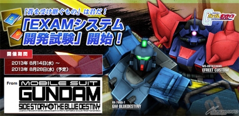 NAMCO BANDAI ONLINE好评提供服务中的Windows专用网路游戏“机动战士高达ONLINE”将在8月14日(三)的定期维修结束时,举办大型更新“Act.2”实装后,第一个游戏内活动“EXAM系统开发测试”。