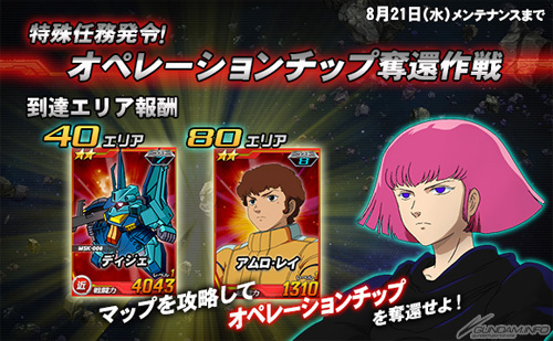 此外,随着地图的攻略,将有机会在报酬中获得“阿姆罗・雷”及“迪杰”等强力机体,请一定要来挑战看看。