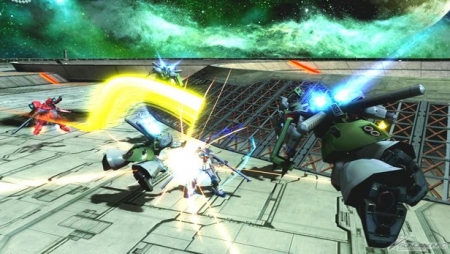 摇杆往前会从自机两侧呼叫后,以机枪进行射击攻击,摇杆往前以外则是冲向敌方,以盾牌・肩刺冲撞进行格斗攻击。