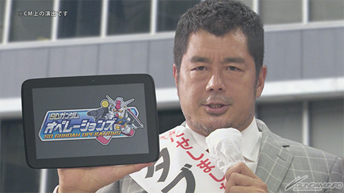 CM影片将由高田延彦和大川蓝参与演出。前些时后公开的Windows专用网路游戏“机动战士高达ONLINE”的TVCM是“更新党”,这次则是以“平板党”的演说来介绍“SD GUNDAM OPERATIONS”的魅力。