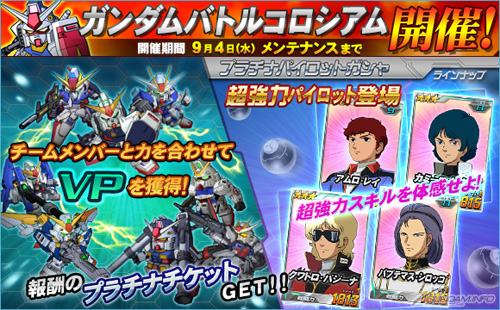 同样从今天8月28日(三)起举办的期间限定活动“高达战斗竞技场”,是在活动限定期间内透过“高达战斗”等方式来获得“VP(Victory Points)”,并比赛获得“VP”总量的竞赛活动。