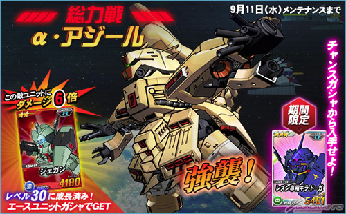 NAMCO BANDAI ONLINE在“Yahoo!游戏”上提供中的免基本费网页游戏“SD GUNDAM OPERATIONS”,“α.阿吉尔”从今天8月28日(三)起在总力战中登场。