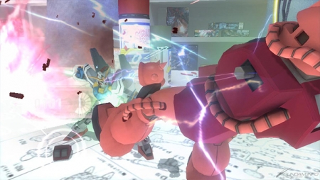 可将零件拆掉、有着“高达模型”风格的破坏表现,在原作当中看不到的场景模型战场,还有用1/144高达比例挑战1/60高达的超尺寸战斗都可以在这款游戏中体验。