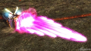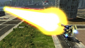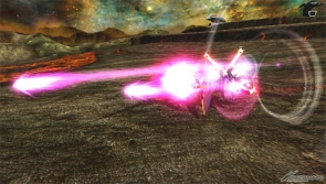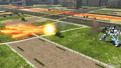 ▲飞行形态时的副射击是一边回避对手的攻击一边连续发射光束攻击。