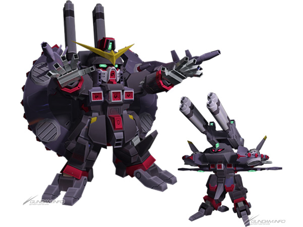 在 ‘机动战士 高达SEED DESTINY’中登场,地球联合军开发的巨大可变型MS。直立时含炮塔在内高达56.3m,机体全身上下具备许多门炮,有着绝大的火力。而在防御面上有 对实体弹用的可变式相转移装甲、对光束兵器用的阳电子反射器,具备不管是对实体弹或是光束兵器都有惊人防御力。