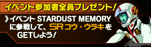 此 外在同一期间中所举办、以‘机动战士 高达0083 STARDUST MEMORY’为题材的期间限定活动“STARDUST MEMORY”当中,“阿那贝尔.卡多”、“西玛.卡拉豪”等王牌驾驶员会在活动专用地图登场,击破王牌驾驶员或依据活动的进行状况,就能获得MS等各种 道具。
