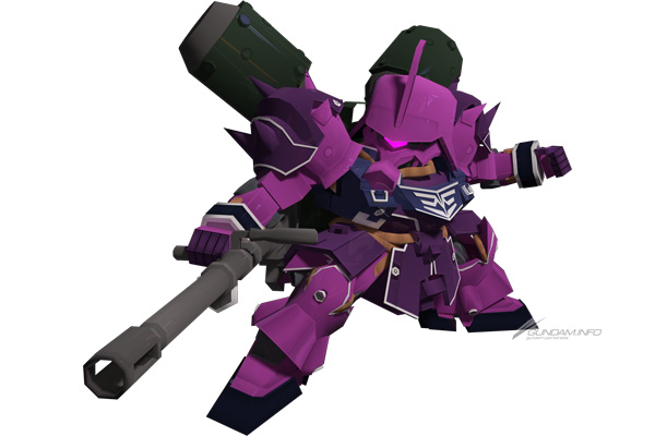 在‘机动战士 高达UC’中登场的MS。武器2、以及武器3的射程距离长,擅长援护我方的战斗方式。其中的武器3“长管布鲁诺炮.改(高输出)”可以进行狙击,应当积极地从远距离来狙击对手。由于不擅常接近战,要时常把握敌我双飞的位置,尽量待在后方来进行战斗。