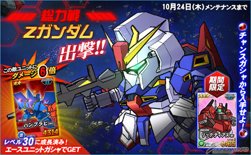 NAMCO BANDAI ONLINE在“Yahoo!游戏”上提供中的免基本费网页游戏“SD GUNDAM OPERATIONS”从今天10月10日(四)起,“Ζ 高达”在总力战中登场。