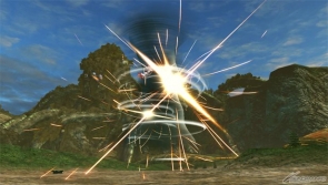 ▲命中时会产生爆炸的特殊射击“排箫形推进器”,可以控制摇杆来调整命中位置。