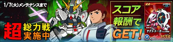 在这次的总力战中登场的是“ν 高达”,而在超总力战中登场的则是“阿姆罗驾驶的ν 高达”,从今天12月24日(二)起到1月7日(二)止的期间中进行任务时,有机会遭遇这些机体。