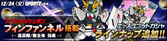同样从今天起,在王牌机体转蛋中追加有特殊武装的强力机体“★3 ν 高达”。请亲自体会可以攻击敌方全体的“翼状感应炮”威力吧。