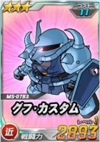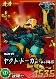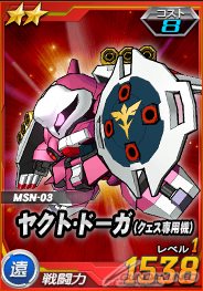 高达试作一号机 全方位推进型”、“夏亚专用杰尔古格”、“百式”。机会转蛋限定“Re-GZ”、得分报酬“亚克托.德卡(葵丝专用机)”。