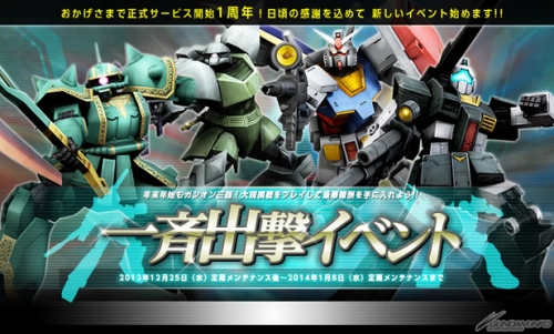 NAMCO BANDAI ONLINE好评提供服务中的Windows专用线上游戏“ 高达ONLINE”,在本日12月25日(三)起开始举办正式服务1周年纪念活动“一举出击活动”。