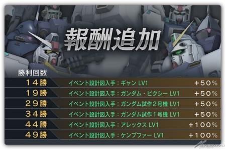 活动是岁末年初企划的一部份,到2014年1月8日(三)13:59为止的期间中,只要达到一定数量的胜利次数,就可以获得特别的报酬好礼。