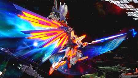 ▲今天公开的游戏截图中,除了有“高达AGE-1”和“完美攻击高达”等粉丝众所期待的新参战MS以外,还有没见过的机体…!