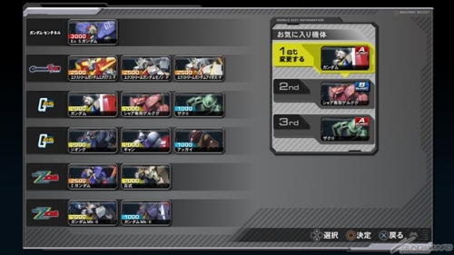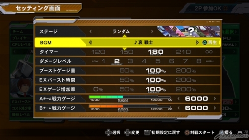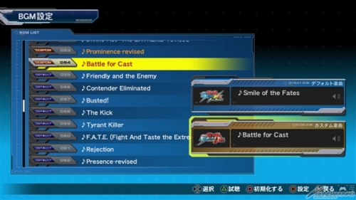 而在预设设定状态中“PREMIUM G SOUND EDITON”的BGM将会在战斗中播放,选择各机体时会追加播放的BGM候补。