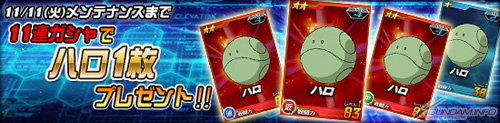 活动期间中,只要来抽11连王牌机体转蛋,除了可以获得11张机体卡片外,还能额外拿到1张“★1”或是“★2”的哈啰(近 or 中 or 远)。