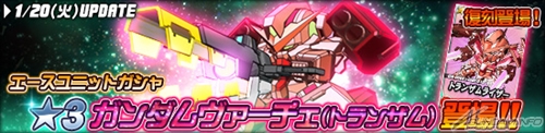 王牌机体转蛋中,有“★3 德天使高达(TRANS-AM)”和“★3 TRANS-AM RAISER”为首的许多强力机体登场。。