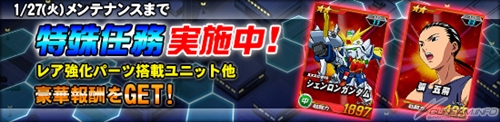特殊任务“OP晶片夺还作战”是以打到在限期地图中登场的强力敌人,获得“OP晶片”为目标。只要进入地图执行任务,就能获得“★2 神龙高达”和“★2 张 五飞”等豪华报酬。