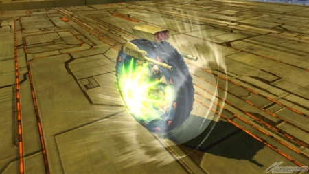 透过投掷岩石和呼叫核心战斗机来让敌人露出破绽,再以威力超大的格斗攻击分出胜负。爆发攻击是在原作中令人印象深刻的正拳突击。此外,如果遭到锁定中的敌机攻击,肩部装甲被炸飞的原作场面也会重现。