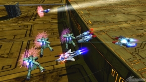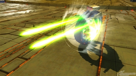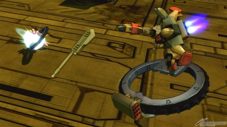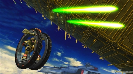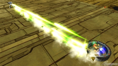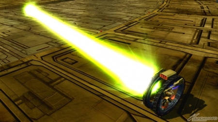 ▲威力型脉冲高达的副射击会分离上半身与下半身来进行攻击。可以一边回避敌人攻击,一边发射光束。