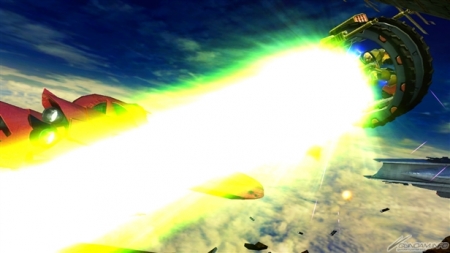 ▲射出零件来攻击的副射击和特殊格斗是本机的生命线。副射击射出的零件有防御射击的护罩效果。