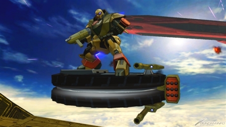 在本作中,这是一台可搭乘轮胎型MS支援机“单轮”来进行突击,或者将单轮当作是空中的踏台来使用,能以丰富的战法吓坏对手的2,000 COST万能机。