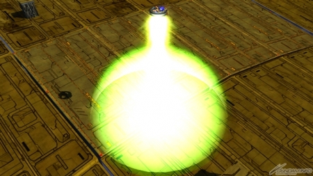 ▲特殊射击武装“光束盾牌【照射】”会对着地面用光束盾牌发射照射光束。照射光束会在命中的地点产生爆风。